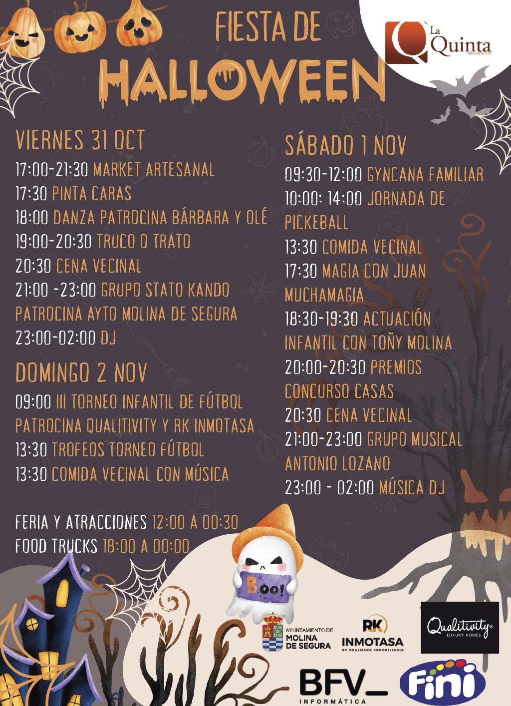 Así fue nuestro Halloween 2025 ¡La urbanización La Quinta se viste de Halloween! Este fin de semana celebramos Halloween con tres días de actividades para peques, adolescentes y adultos. Habrá mercadillo, pintacaras, magia, música, premios a las mejores casas decoradas… ¡y mucha diversión en familia!Lugar: Urbanización La Quinta (Molina de...